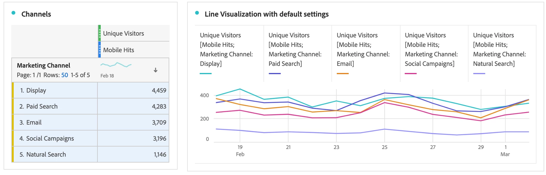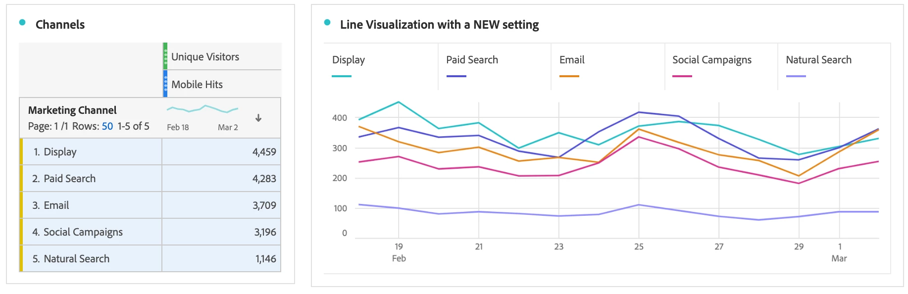 This is how it looks when a metric is filtered by dimension, segment, date range or their combination. The legend becomes too heavy that is especially critical for dashboards.