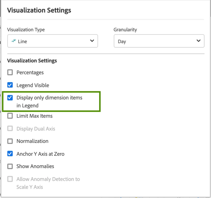 It is very often when the legend part of the visualization requires manual edit for making the chart look cleaner and easier to read. It would be very helpful to add a new setting that would allow to not include Metrics and Metric Filters (column names) in the legend labels.