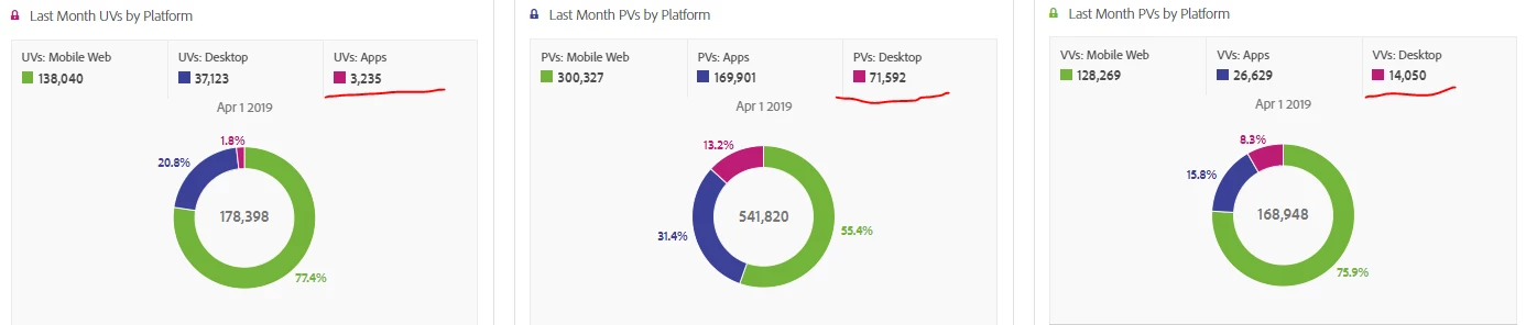 Hi, I want to use donut charts to show platform distribution across different metrics, but they do not maintain colors across all three that I am creating, making it difficult to grab the info on a single look without looking at the legend on all three charts.