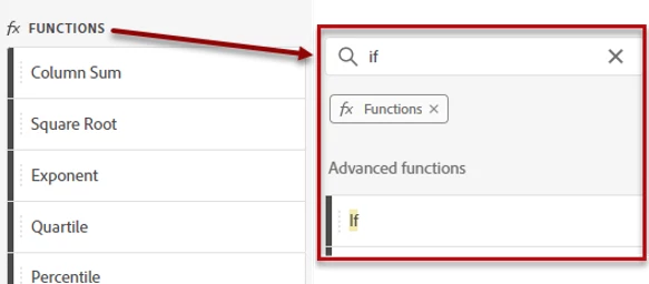 - In the components bar Function section, search for the “If” function.
