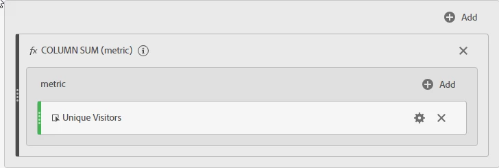 - Drag the Colum Sum function onto the 'drop metrics' box.