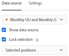 - On the visualization click the gear icon > Data source. Then select "Lock selection" and, from the drop down, "Selected positions". This will lock the visualization to the selected data.