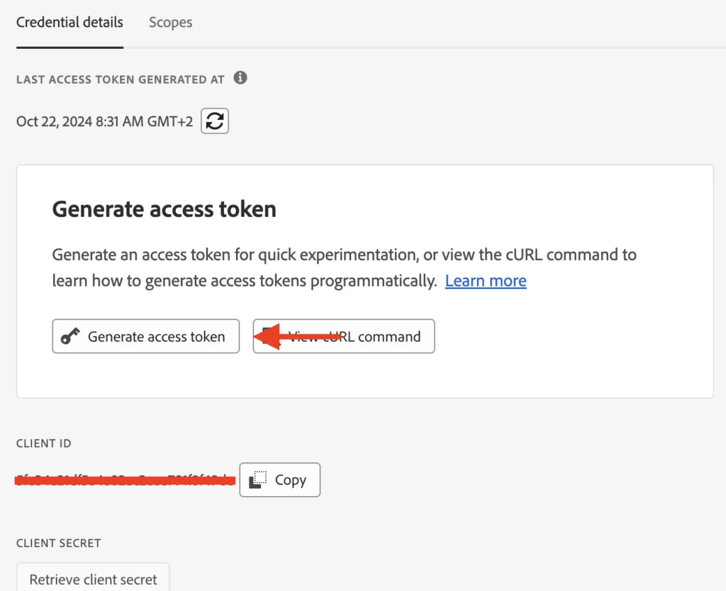 To get this information, you need to create a project on Adobe.io. Here are the high-level steps: