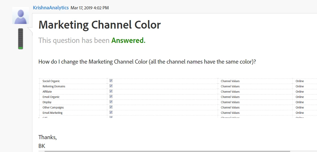 How do I change the Marketing Channel Color (all the channel names have the same color)?