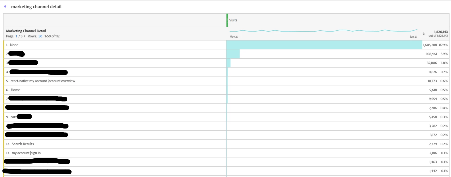 I assume the marketing channel detail should return the value of the marketing campaign according to my config on the marketing channel processing rule, but it seems to return a bunch of page name to me which doesn't make sense at all: