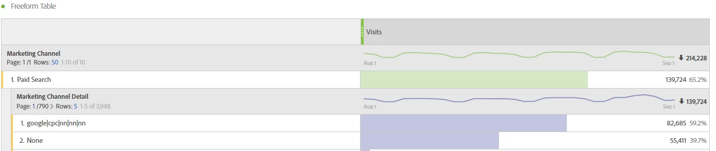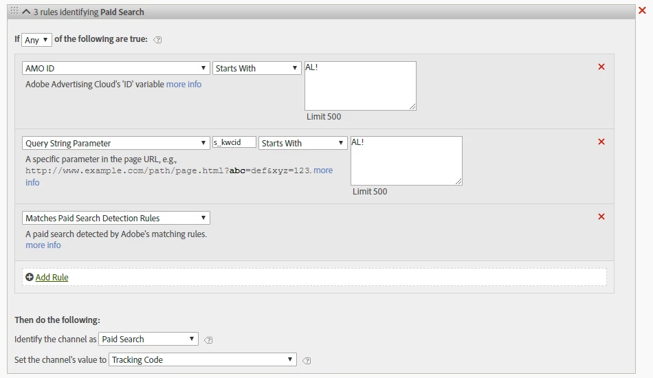 After creating the Marketing Channel Processing Rule for the marketing channels the value "None" is conspicuously high in all channels. How can I rate this? Is there a configuration error? We are using AMO for our performance marketing. Additionally we are using UTMs-Rules (utm_source) for other channels in this rule set.