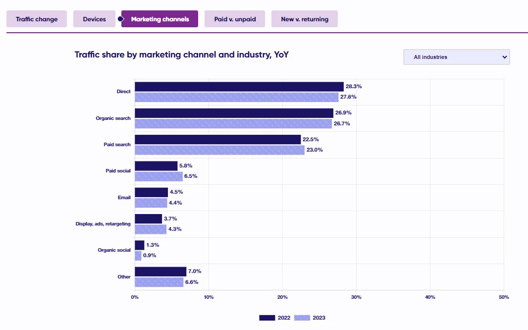 - Paid Search/Ads: ~5-10%