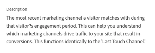 - va_closer_id (last touch channel id - your team will have to map these ids to your channel ids in Adobe)