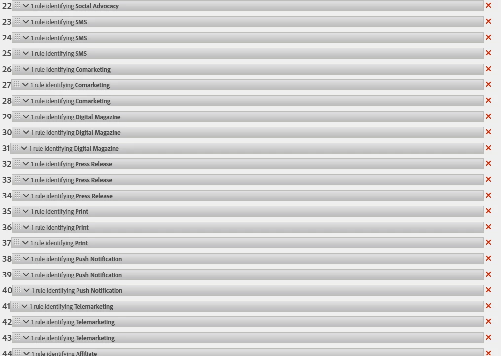 From January to May, the "none" category under Marketing Channels showed 6,000 to 12,000 pageviews. However, in April, I replaced the dot in the Internal URL filter with all our internal websites, and then in June, the "none" category no longer appears. I'm uncertain about where all the numbers have gone, as the figures for other channels remain consistent throughout the months.