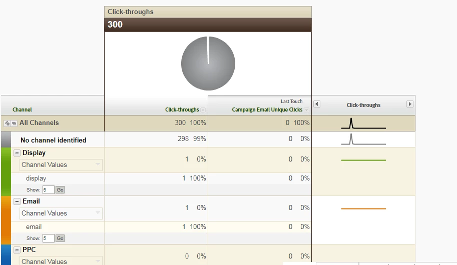 and you need to set the channels vlaue to „utm_medium“ (i would even use something else like the full query string or a concatenated value of the parameters...)