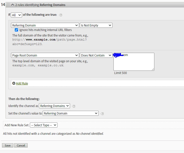 You could consider moving the aggregator rule above the referring domains rule to give it priority over the referring domains rule - this way there would be no need for the exclusion on the referring domains rule.