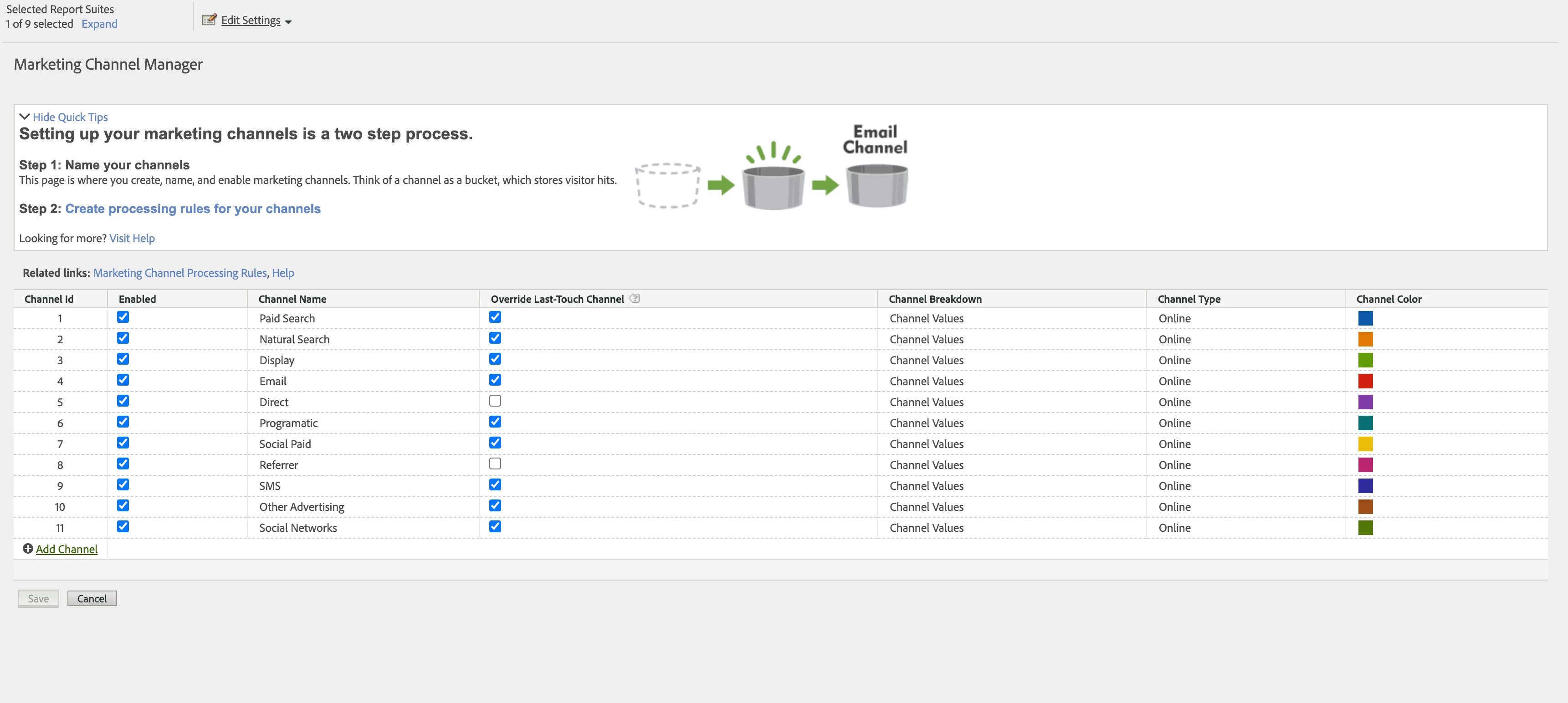 And in the the Marketing Channel rules