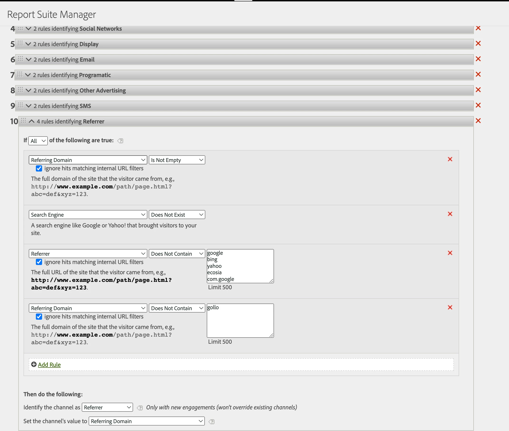Marketing channel rules Referrer mixup