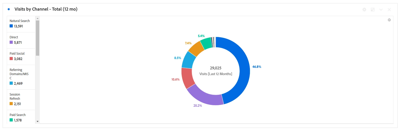 Hi! I am working on dashboards for my marketing organization. I run into issues while creating different visualizations based on marketing channel data. For example, in the below donut chart, Natural Search is blue due to it having the highest volume of visits. However, when I create a bar chart that shows visits x channel x month, Direct is blue because of how the freeform table has to be set up for that specific visualization. This can be pretty confusing for my team members who use this reporting. Is there a way to lock the order of these channels so that no matter what page/date range users are looking at the marketing channel legends stay aligned?