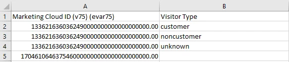 Goal: Determine the entry of an evar/prop against a list of Marketing Cloud IDs.