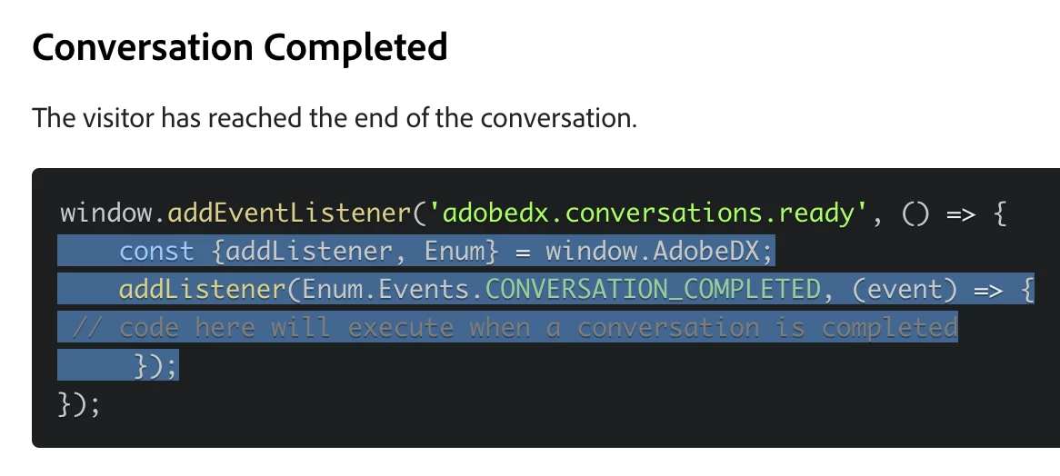 addListener(Enum.Events.CONVERSATION_COMPLETED, (event) => {