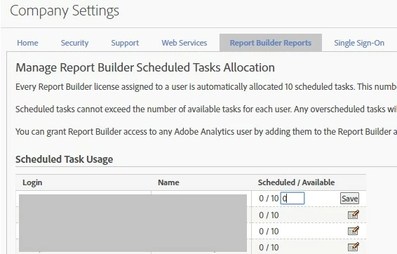 In report builder I get the message "You reached the maximum number of allowed scheduled reports". However, when I log in into the same account and go into Analytics->Components->Reports scheduled - I have no reports scheduled. I am unable to schedule any reports due to this bug. Can anyone help me sort this out?