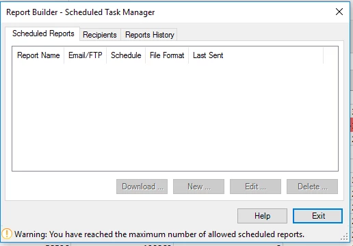 Maximum number allowed scheduled reports alert - not true