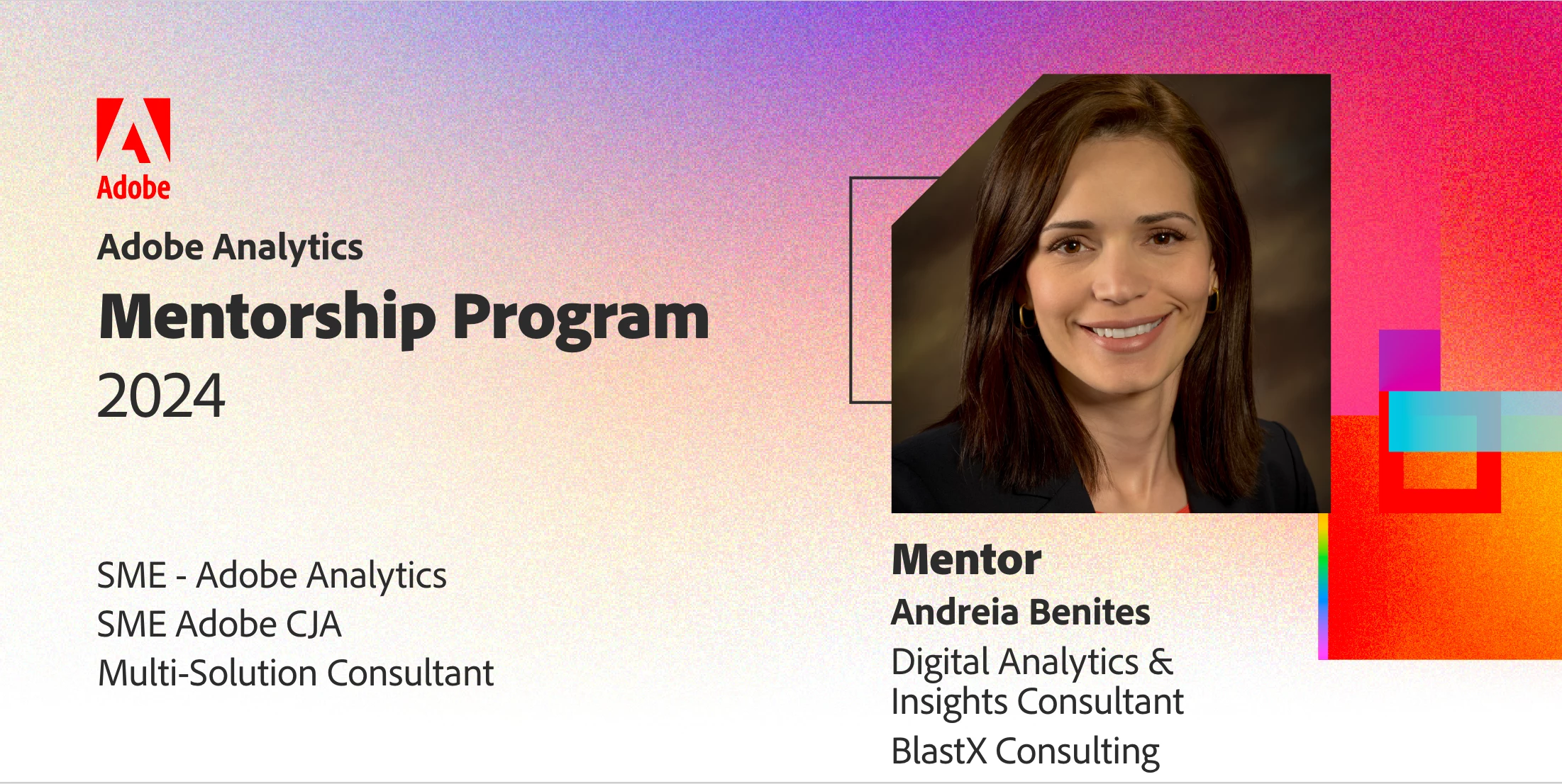 Welcome to the Adobe Analytics Community Mentorship Program 2024! This is the featured Community Discussion thread for your Adobe Analytics Community Mentor, Andreia Cristina Da Silva Benites (aka @andreiabenites), who will be here to guide and support you and your peers with your Adobe Analytics questions as you prepare for the Adobe Analytics Business Practitioner Professional Certification (Exam ID: AD0-E212), through to the end of the program.