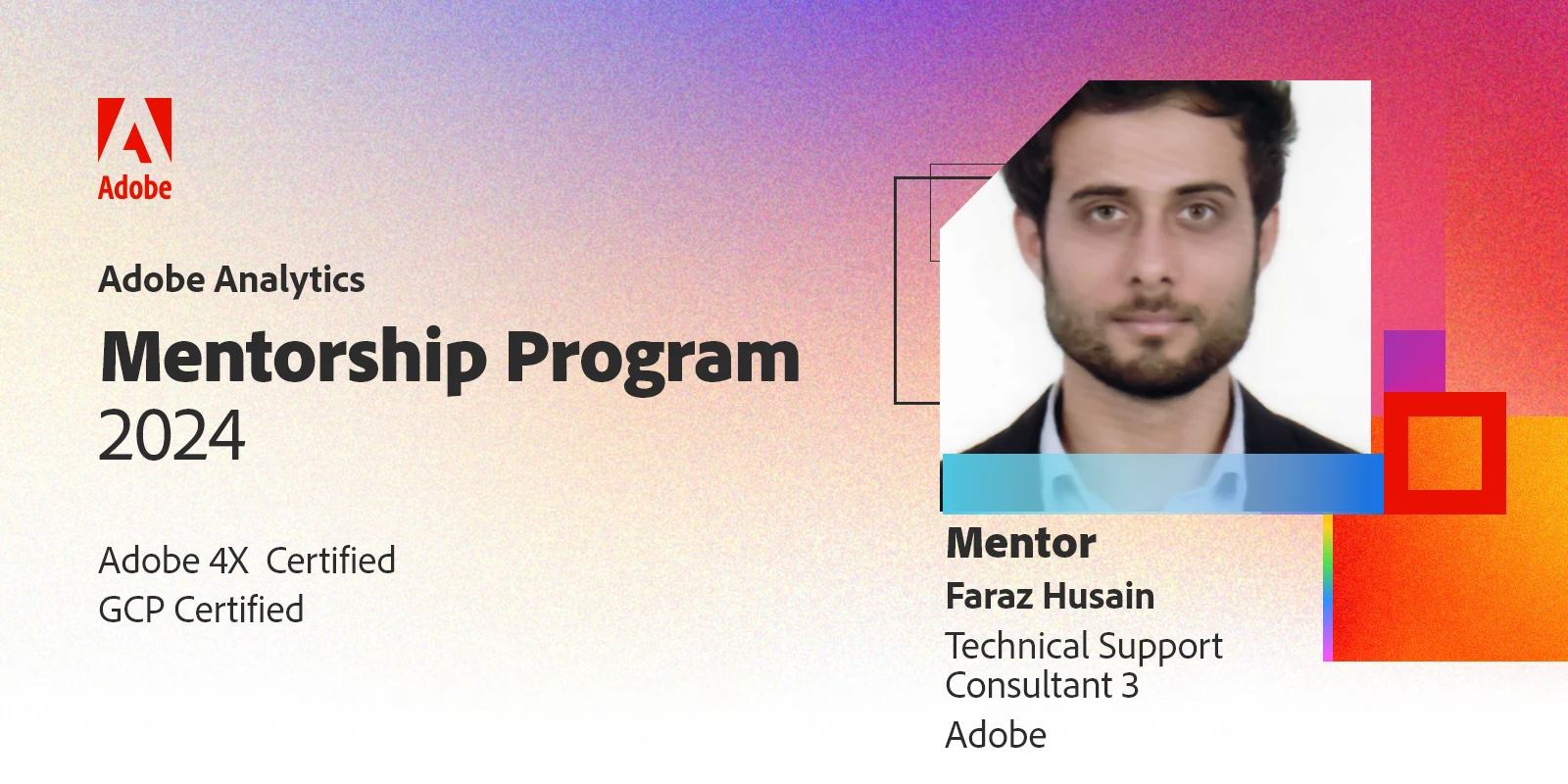 Welcome to the Adobe Analytics Community Mentorship Program 2024! This is the featured Community Discussion thread for your Adobe Analytics Community Mentor, Faraz Husain (aka @fhusain), who will be here to guide and support you and your peers with your Adobe Analytics questions as you prepare for the Adobe Analytics Business Practitioner Expert Certification (Exam ID: AD0-E208), through to the end of the program.