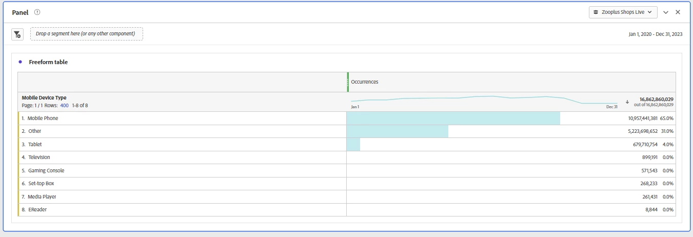 In Adobe Analytics, the "Mobile Device Type" field defers specifically to identify groupings of devices (the exact rules of those mappings doesn't appear to be disclosed anywhere in the documentation)... Desktop devices, and I would imagine other device types that don't sort of relate to the existing groupings would fall to "other".