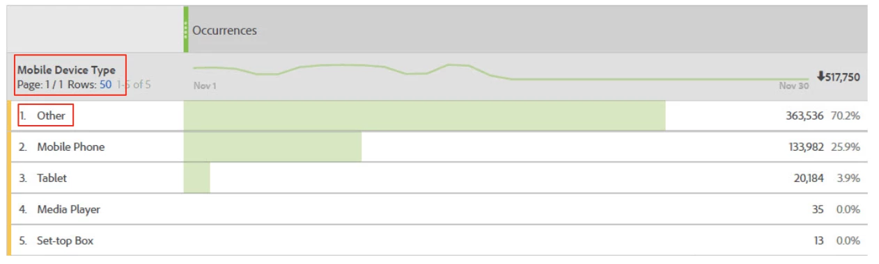 We need to change the value "Others" to "Desktop" for the "Mobile Device Type" dimension.