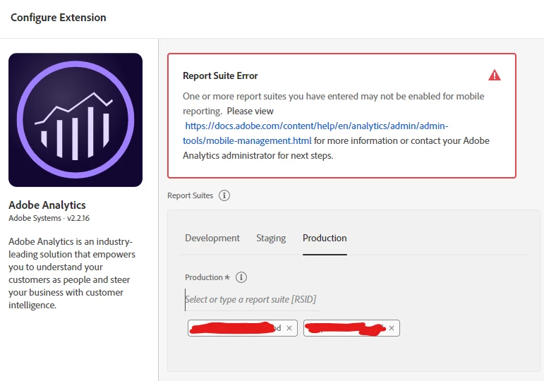 I think the reason it's not allowing you to add your website suite is just a matter of configuring your suite to accept mobile app data. There should be instructions for how to turn that on from the link that was provided in your screenshot.