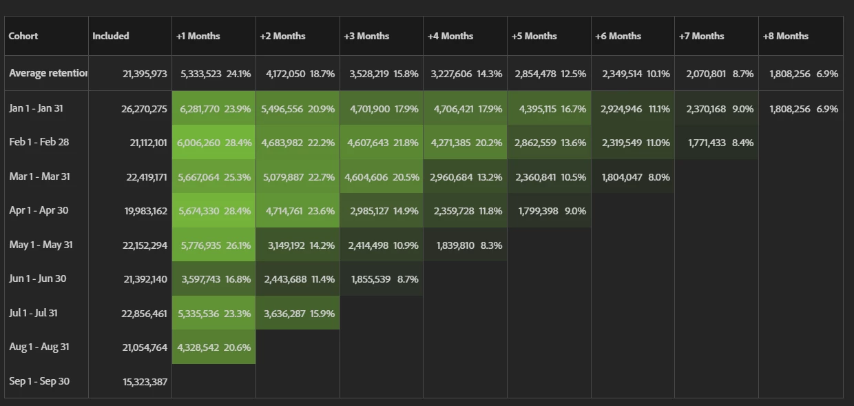 - Cohort table (as suggested in this blog), it doesn't completely respond to the question but it can gives an idea of the magnitude of returned/new visitor: