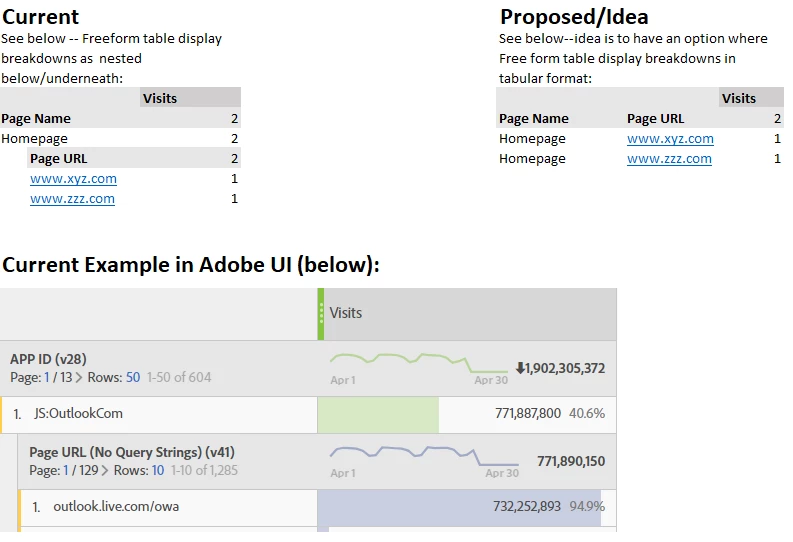 I don't think this is what the feature request is asking. It's asking for tabular format, rather than nesting below. here is another post with a clearer example: Show workspace freeform table breakdowns in tabular format
