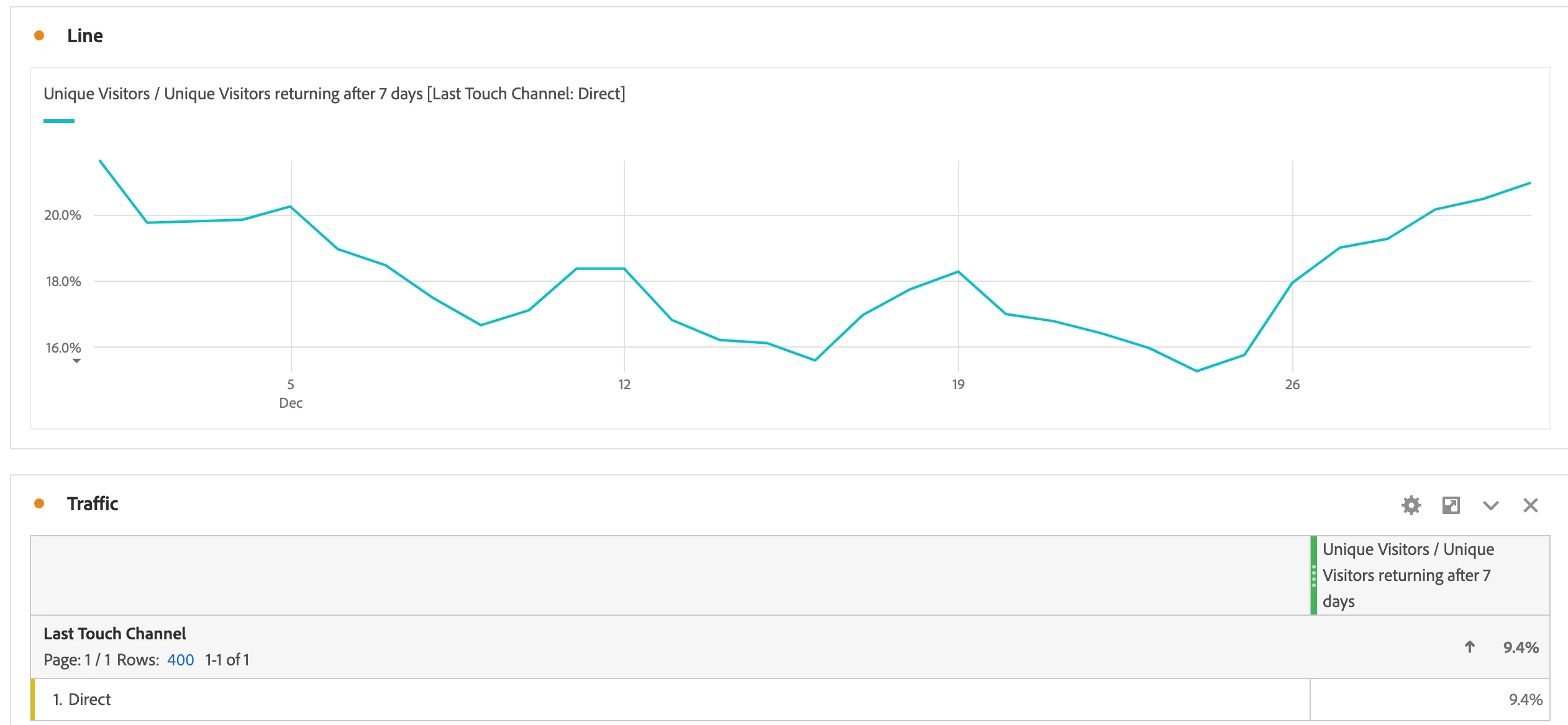 But in your table its aggregate for the time period, so they would only appear once in the numerator for the aggregate period. Its the result of the way in which unique visitors are automatically deduplicated for the time periods applied.