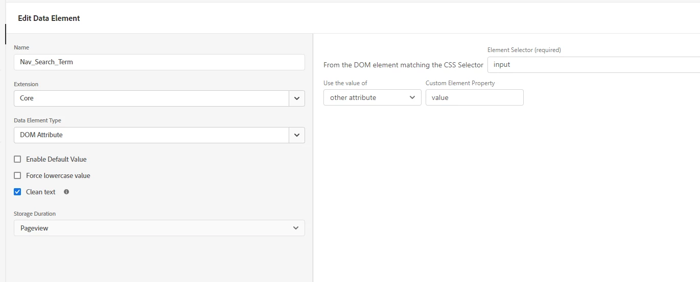 When you are actually performing the search, the the search behaviour takes you from the page where you executed the search to the search results page... it's entirely possible that the input element is not reachable by the time the Data Element attempts to execute and get the value..