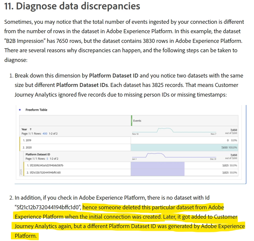 I was reading the documentation on Diagnose Data Discrepancies in CJA. Here is the URL (Customer Journey Analytics FAQ | Adobe Customer Journey Analytics) and screenshot below.