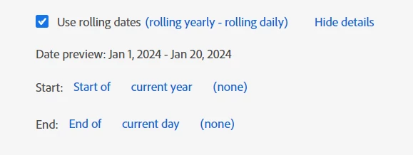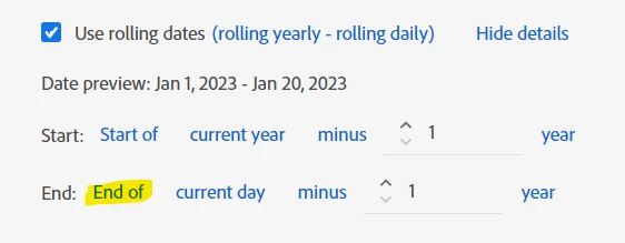 I am looking to conduct a dynamic data comparison by comparing the current year's sales data with that of the same period last year. The data is continually rolling, with each day's sales data contributing to the total sales. consequently, I expect the sales data from the corresponding period last year to also accumulate accordingly. however, I've observed that the data from last year is not automatically increasing. Could you please provide guidance on configuring this setup effectively? thanks