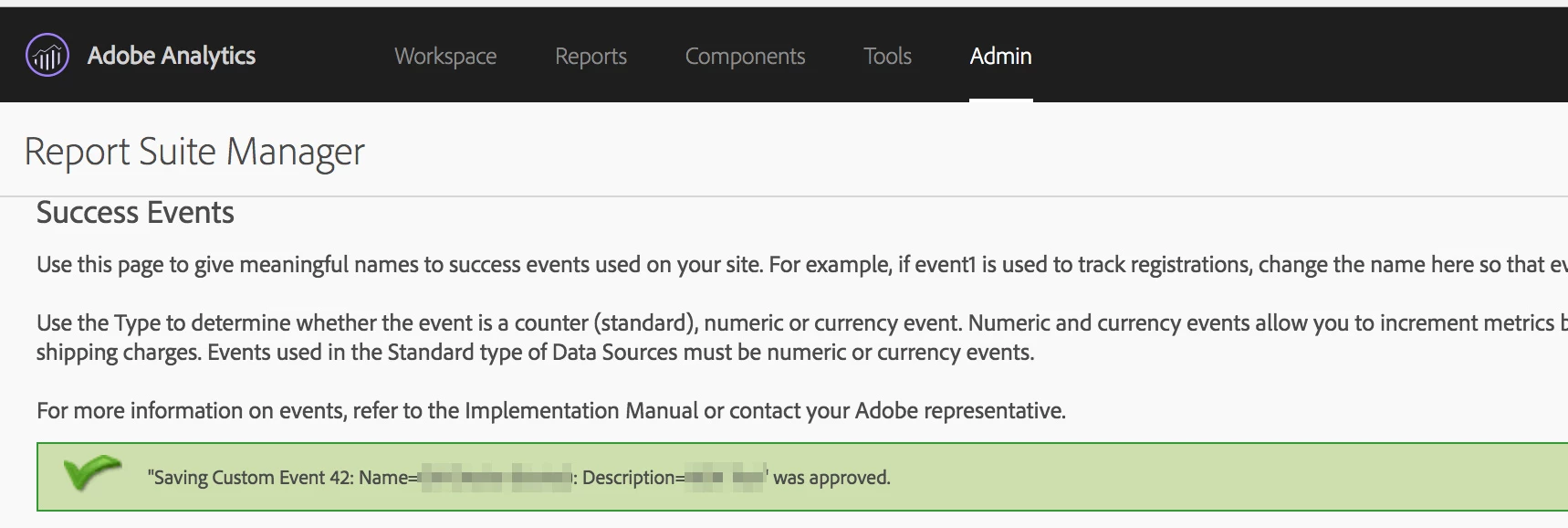 "Saving Custom Event XX: Name=<myEventName>: Description=<myDescription>" was approved. |