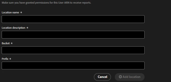 - Fill out report destination (put in p roper ARN and granted user ARN as well)