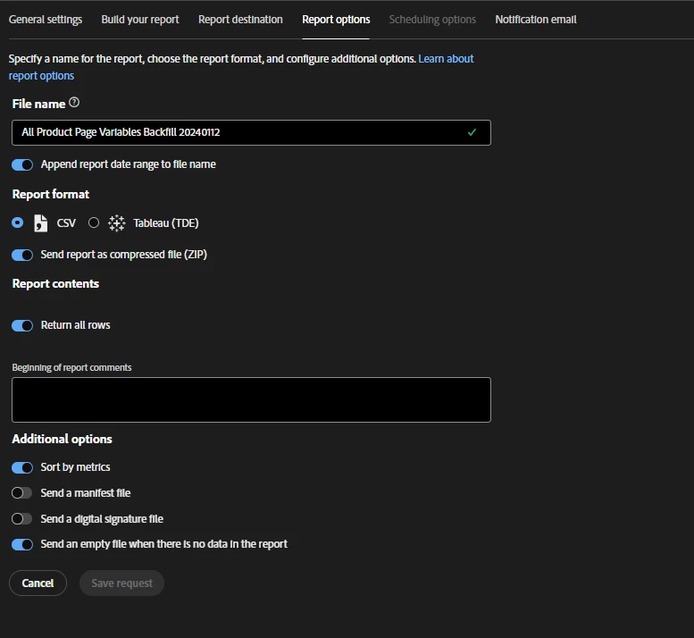 I have built a report to be exported to an FTP server on the new Data Wearhouse UX.