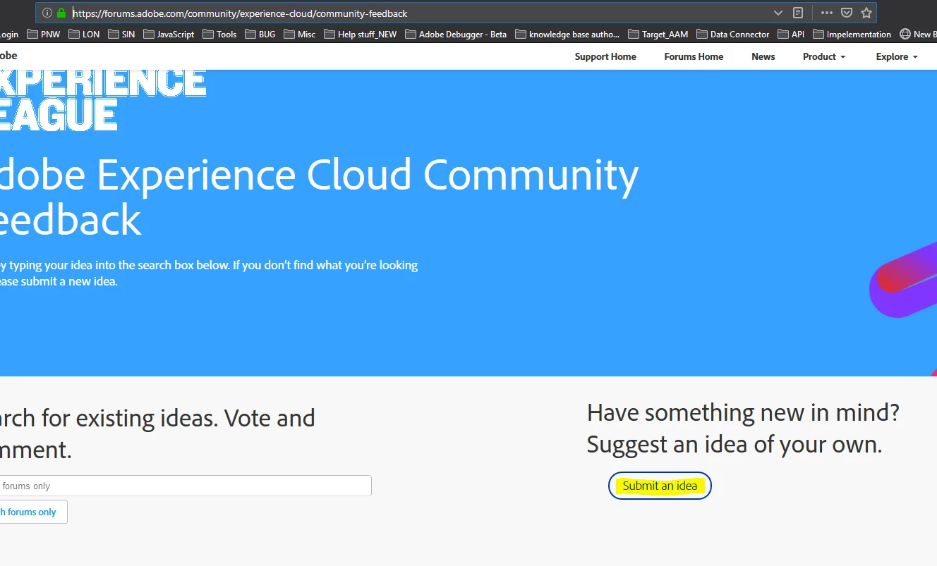 I had a new idea which I would like to submit to Adobe [this is about Experience League] - please help me with the process.