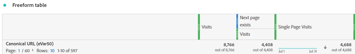 I need to create a 'Next page exists' segment in AA so I can see the percentage of users that had a next page in their visit (not necessary a list of pages that they visited) when I report on a single page or a list of pages in the table format.