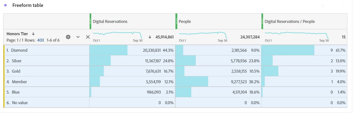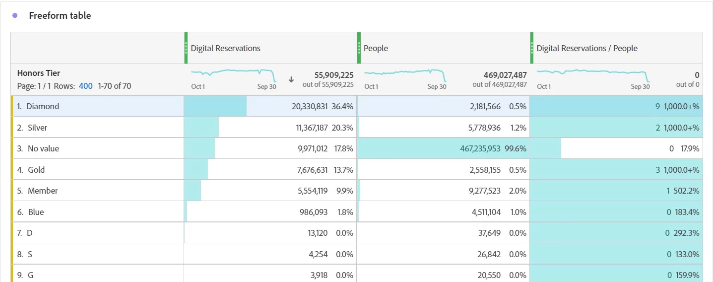 NoValue percentage decreases drastically when table view is restricted to only few rows.