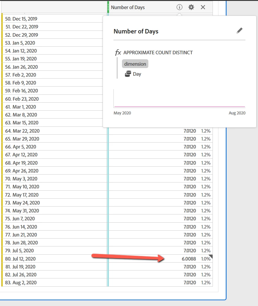 I recognize the function is "approximate", but the value is very consistent across other weeks of the year; I gather the "approximate" part of the metric deals more with larger volumes of data. Any idea what's happening here?