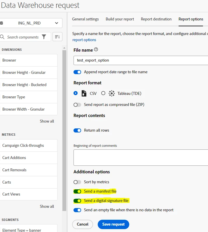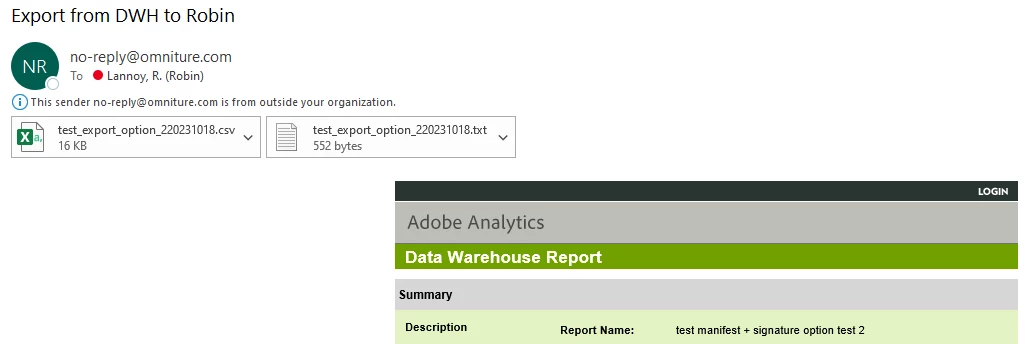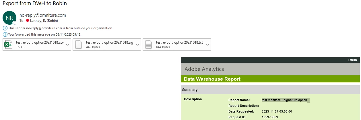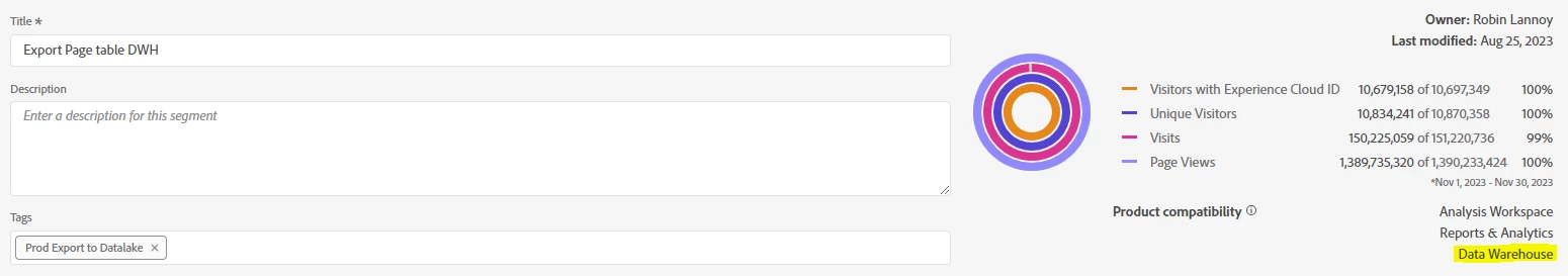 To validate this, I scheduled (at the same time as the DWH export) a report to be sent on the segment containing the data to extract.