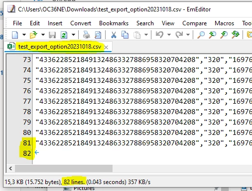 Number of lines in my datawarehouse export is not aligned with the workspace figures