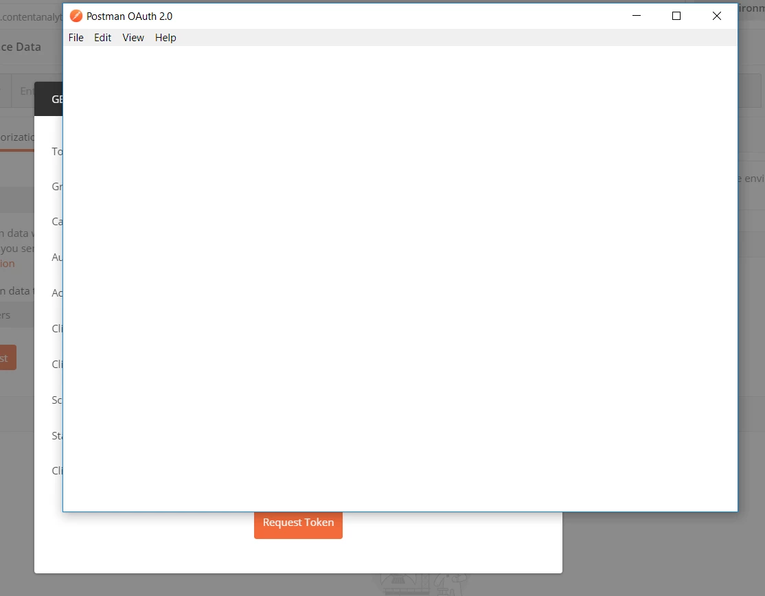 Having an issue while setting up OAuth authentication in Postman. When trying to request a new token by filling in all the required information, getting an empty screen? Can someone help with this one?
