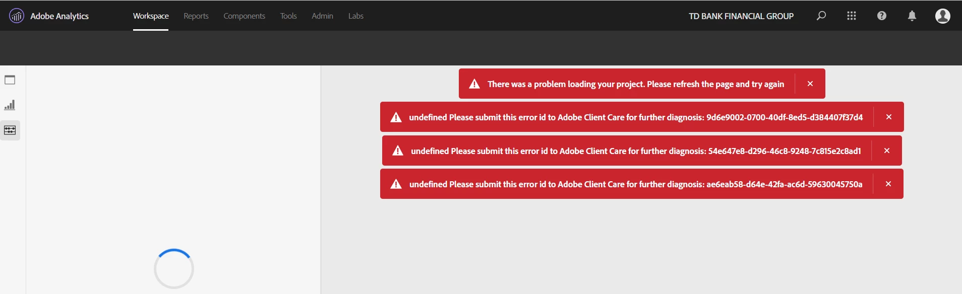 Omniture Workspace Loading Error