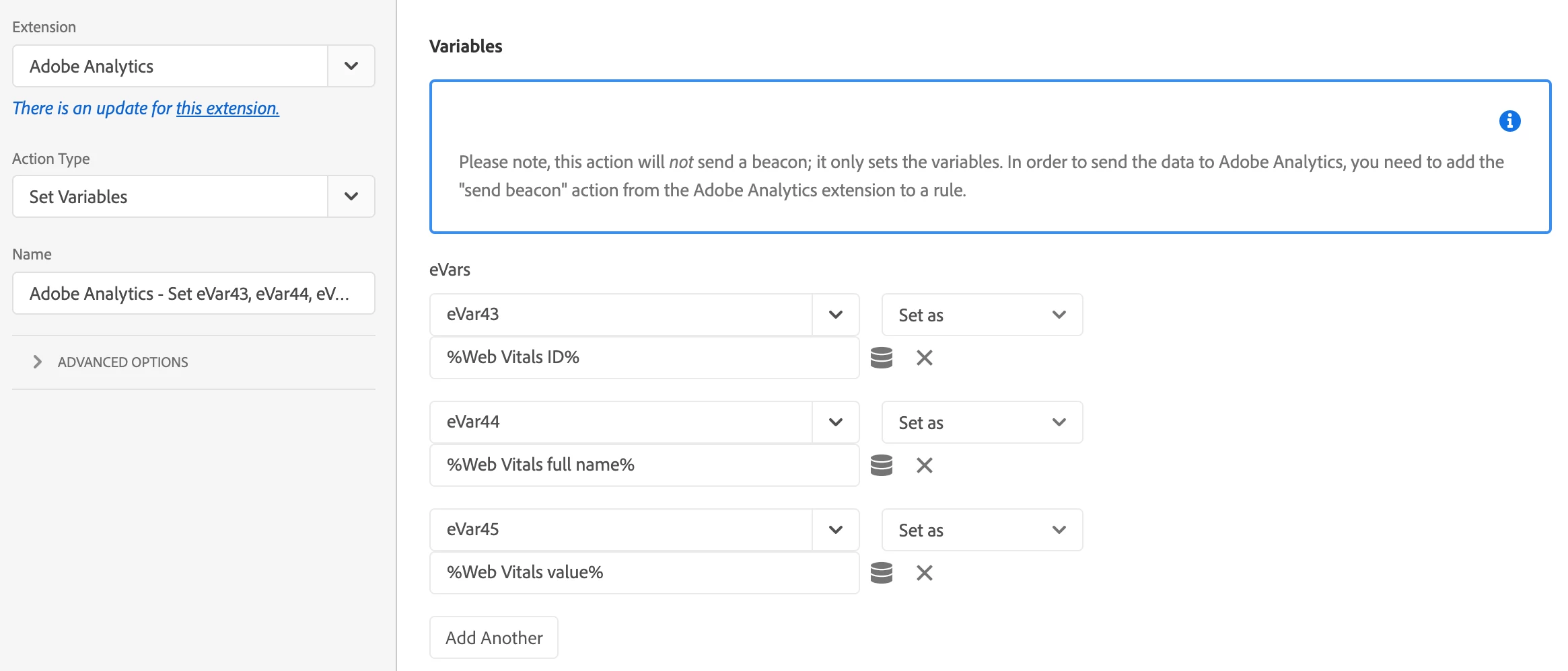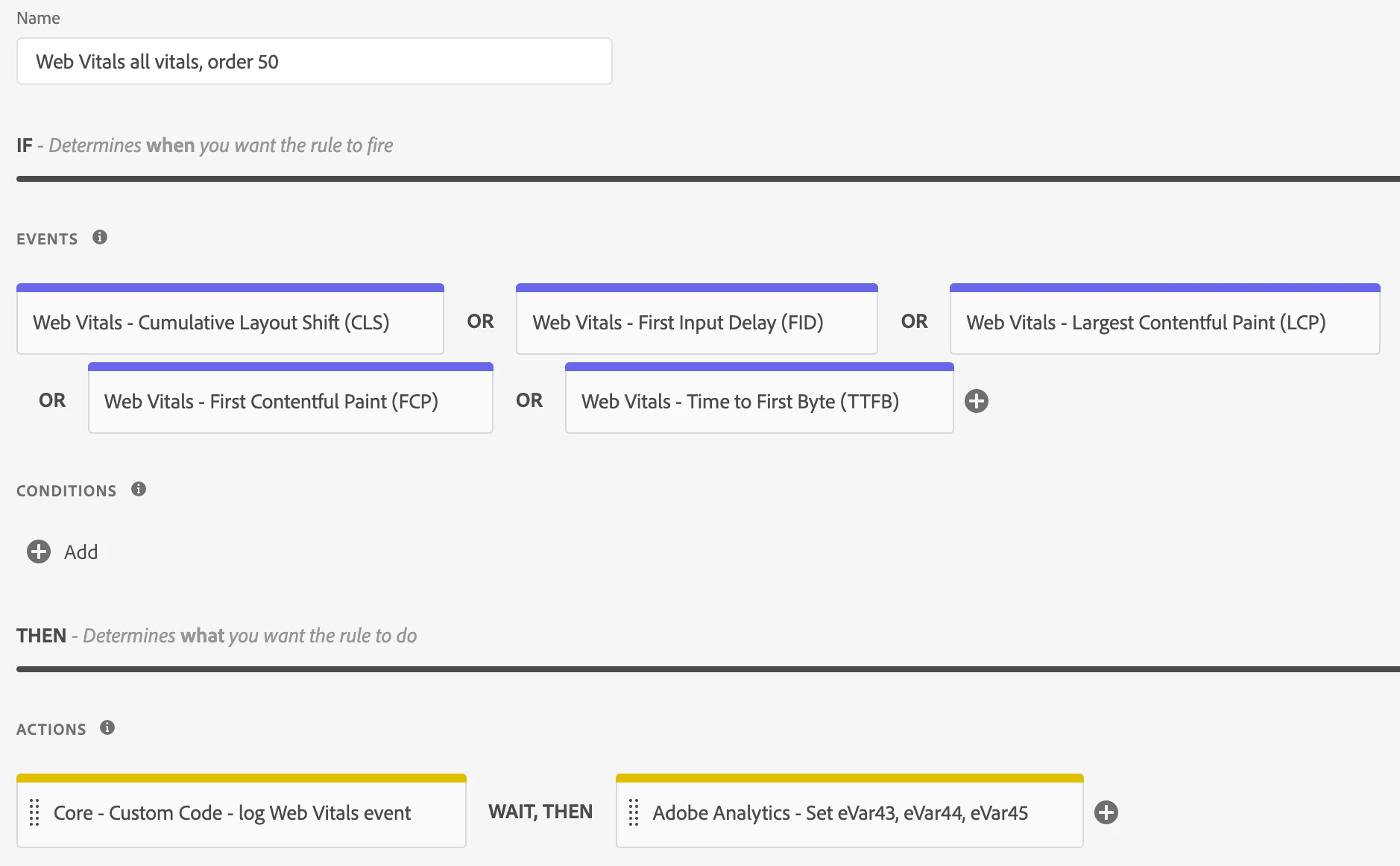 Once the Web Vitals extension is installed, Data elements are created - How to create the rules?