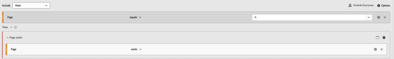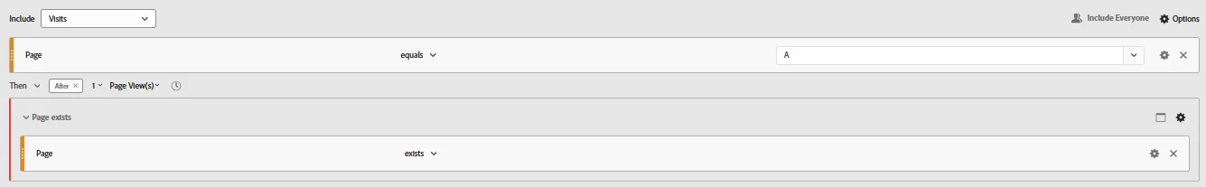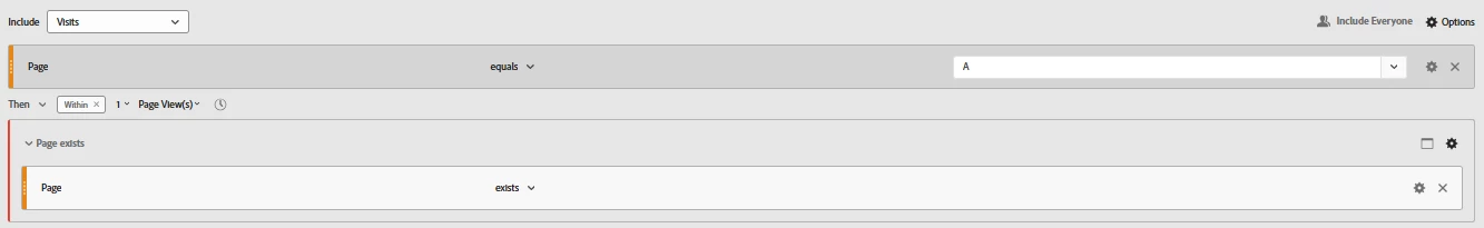 I'm creating a segment to identify cases where there are no visits after a specific page