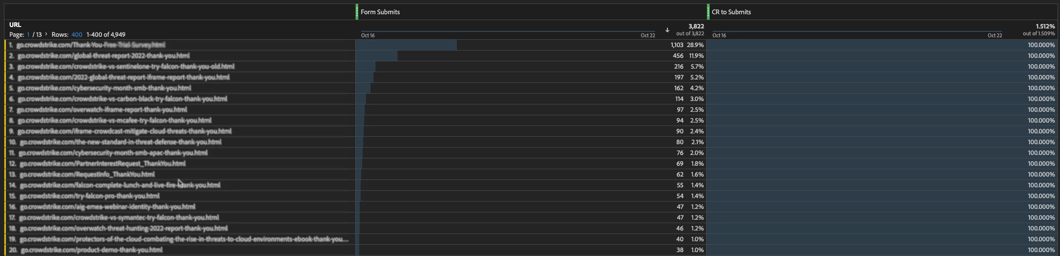 Now for "CR" on your form, knowing which form is shown again will be easier if this is coded onto the page, rather than trying to calculate it... While not forms, we have "dialogues" that appear based on different criteria, so I can't just look at "Page X" and know that it has "dialogue A" - so I actually code in impression data (our developers tell me via data layers what is shown on the page) so that I can trigger contextual event data for "impressions".