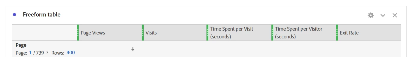 Page | Pageview | visits| time on site | total second | exit rate