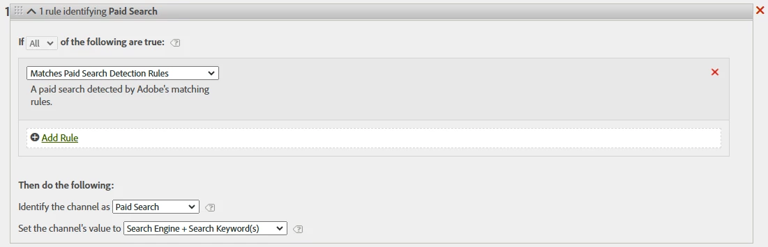 - Marketing Channel detail set to "google" (assuming you are setting value to "search engine in this rule)