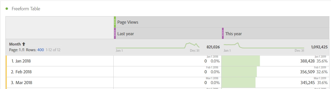 Also would like to know how can i get a double chart .I need to compare page views with this year vs last year wherein this year data should be reflected in bar and the last year to be in Trend line. Any Suggestions?